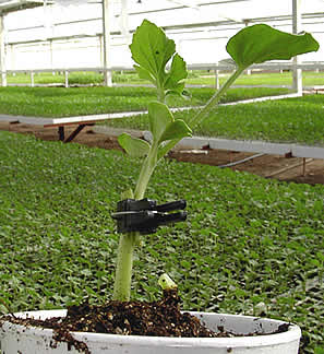 Injerto de tallo de sandía en uno de calabaza, esto origina una sandía mas fuerte, grande, resistente y productiva.